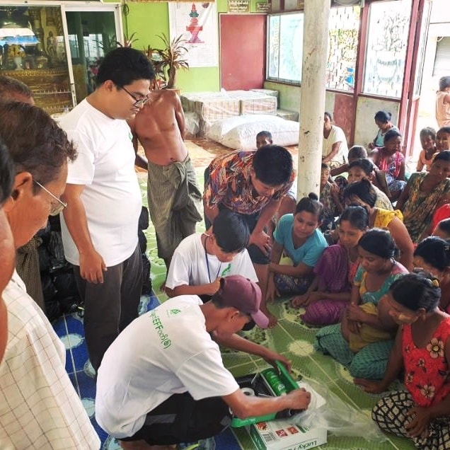 We, Eff Gas - Eco Friendly Fuel was donated the 1,000 sets of portable gas stoves (one portable & four cartridges) that valued around 500 lakh. And our premium dealers was donated the 100 sets of the portable gas stoves which valued around 100 lakh, 70 Water purifiers, 90 lakhs and other consumer goods to Rakhine households affected by Cyclone "Mocha" on June 2022.