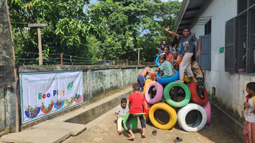 We, Elite Petrochemical Co., Ltd created playground by recycle tire for fun and physical activity at Muslim orphanage from San Village, Twante Township, Yangon on October 2023.