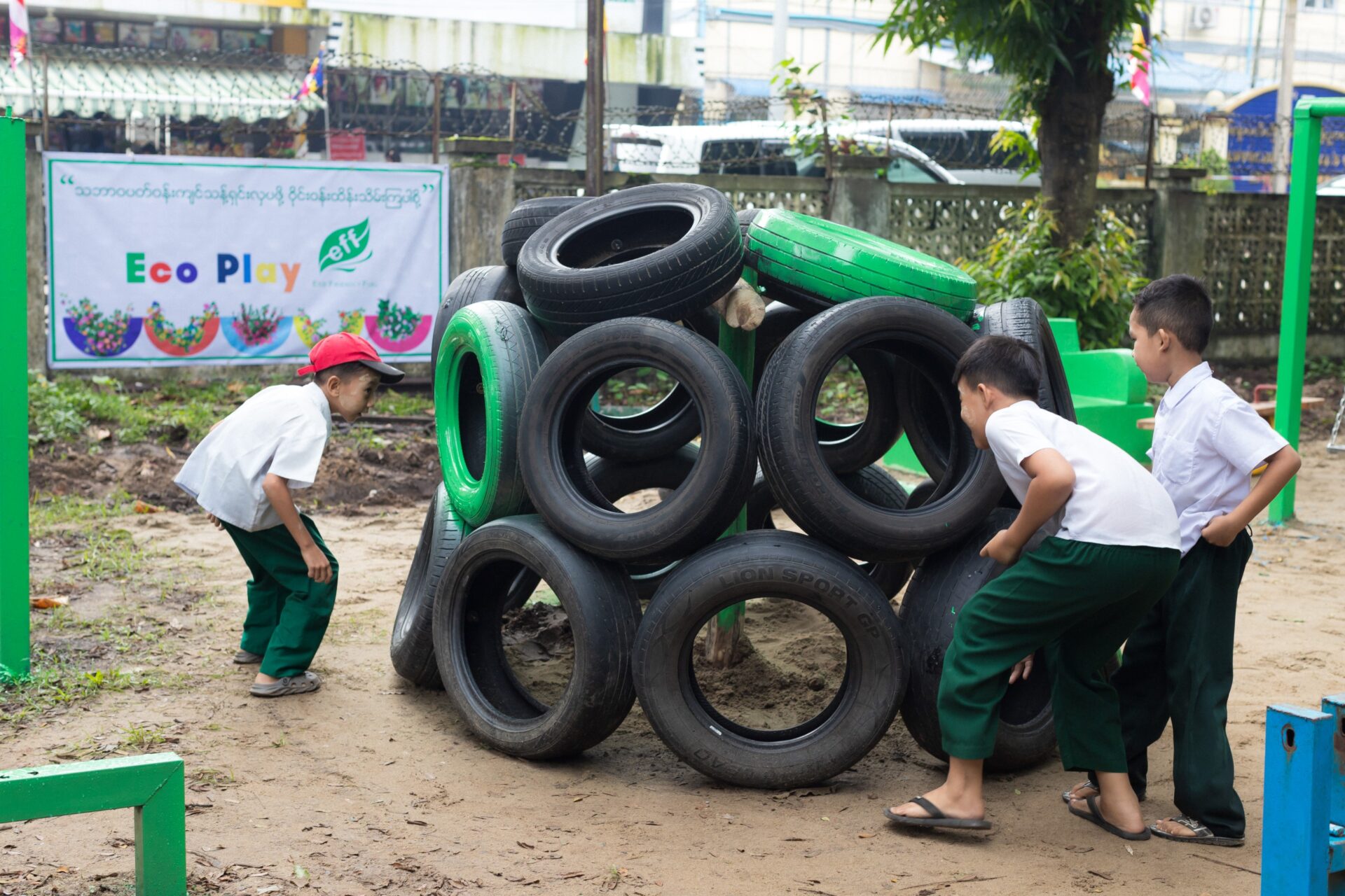 We, Elite Petrochemical Co., Ltd created playground which was used recycle tire for fun and physical activity for the childern who attend the BEHS No - 11 Pathein.